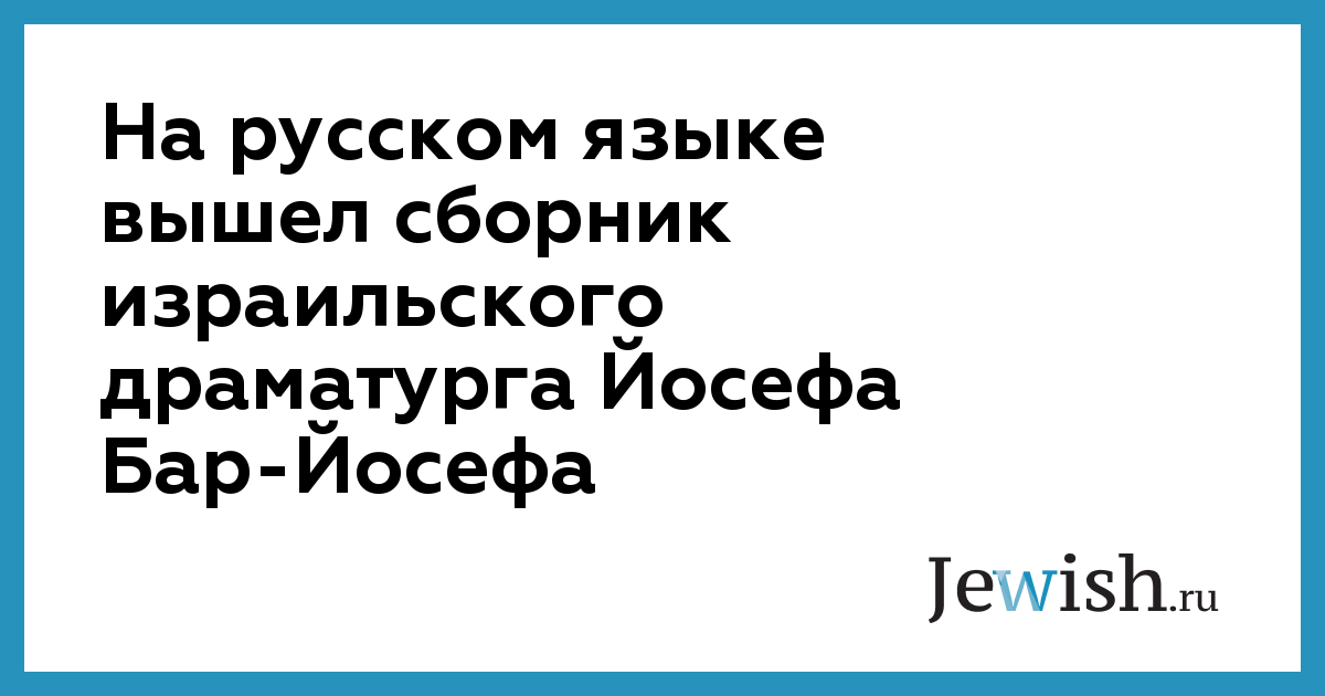 На русском языке вышел сборник израильского драматурга Йосефа Бар-Йосефа