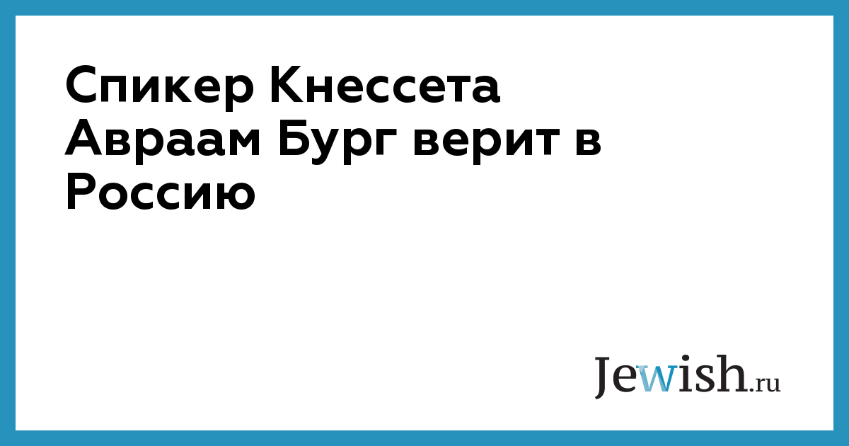 Спикер Кнессета Авраам Бург верит в Россию