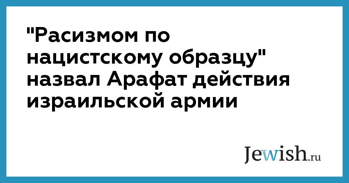 "Подобно нацистам, израильтяне ставят номерное клеймо на руках арестованных палестинцев", — заявил Арафат в понедельник вечером в Рамалле. "Разве это не то же самое, что германские нацисты делали с в свое время с евреями ?" — отметил Арафат. Так он прокомментировал массовые аресты арабов израильской армией в ходе недавней операции против палестинцев.