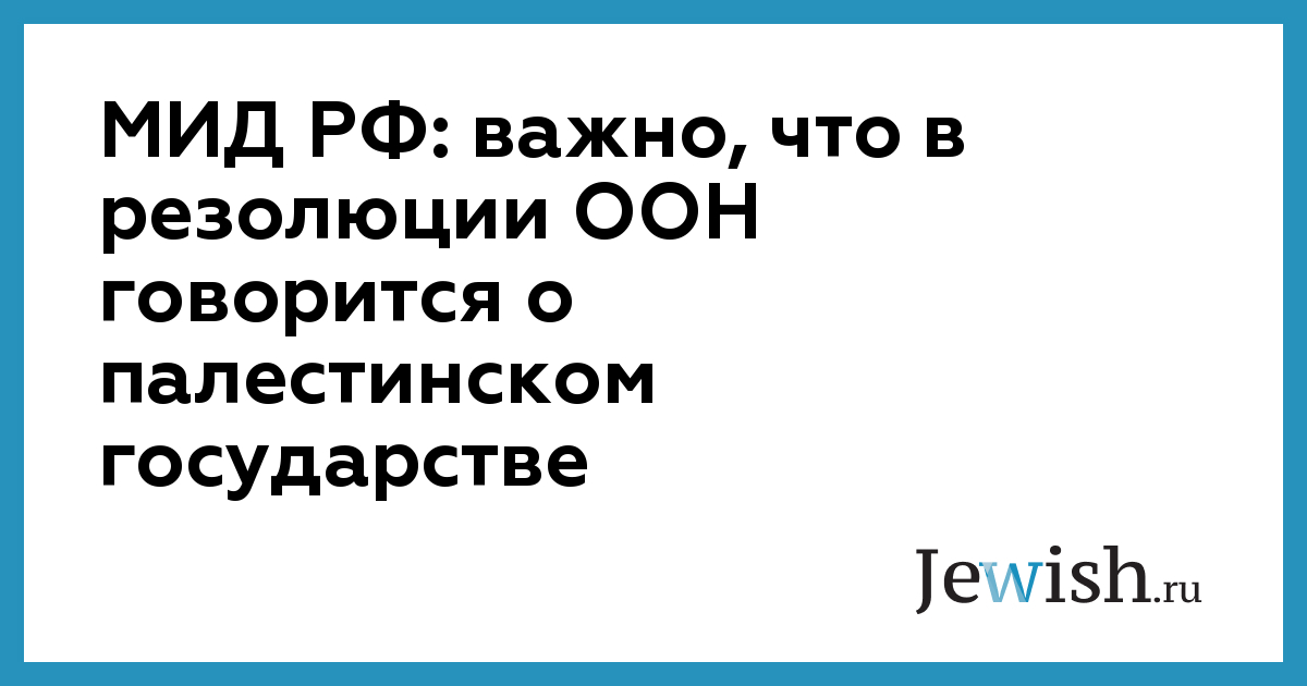 МИД РФ: важно, что в резолюции ООН говорится о палестинском государстве