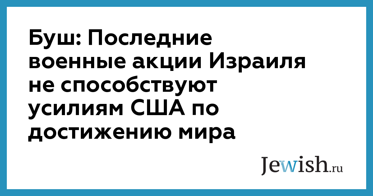 Буш: Последние военные акции Израиля не способствуют усилиям США по достижению мира