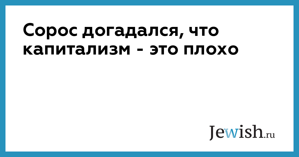 Сорос догадался, что капитализм — это плохо