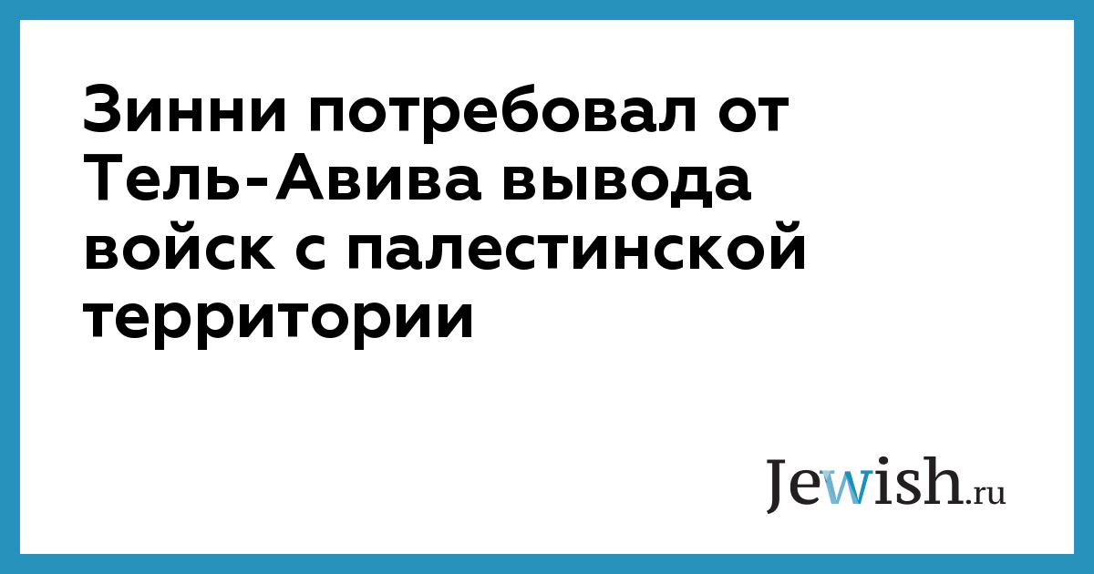 Зинни потребовал от Тель-Авива вывода войск с палестинской территории