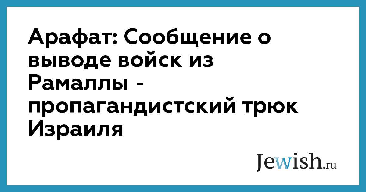 Арафат: Сообщение о выводе войск из Рамаллы — пропагандистский трюк Израиля