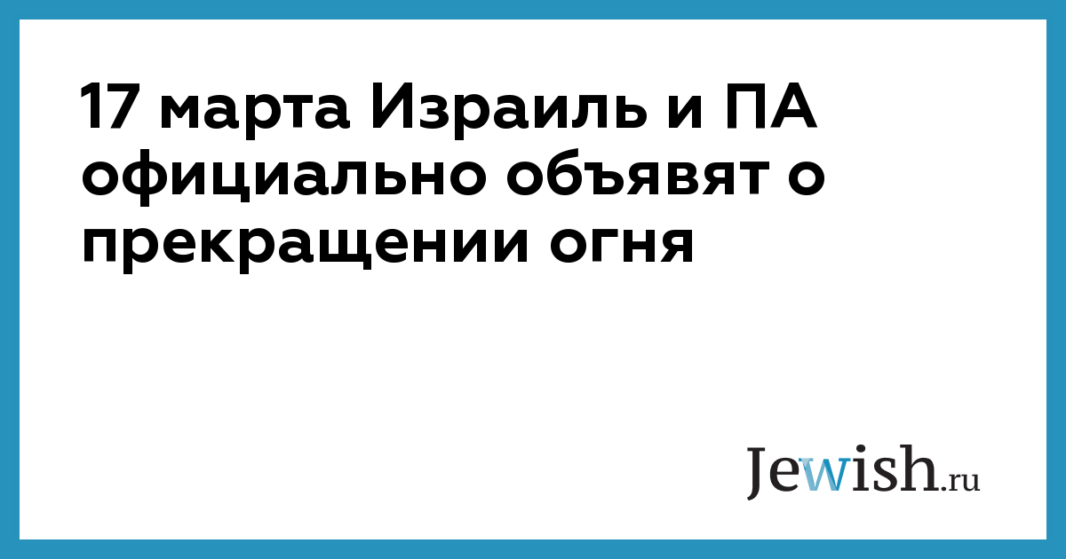 17 марта Израиль и ПА официально объявят о прекращении огня