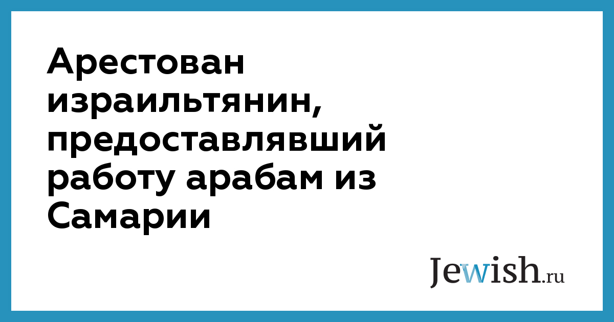 Арестован израильтянин, предоставлявший работу арабам из Самарии