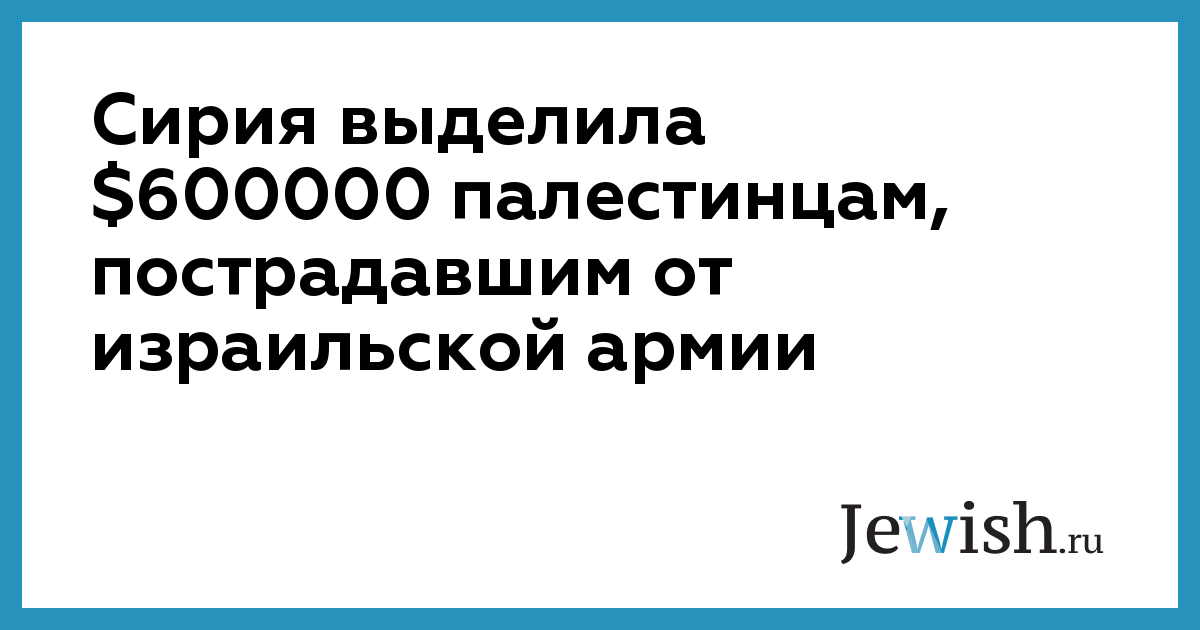Сирия выделила $600000 палестинцам, пострадавшим от израильской армии