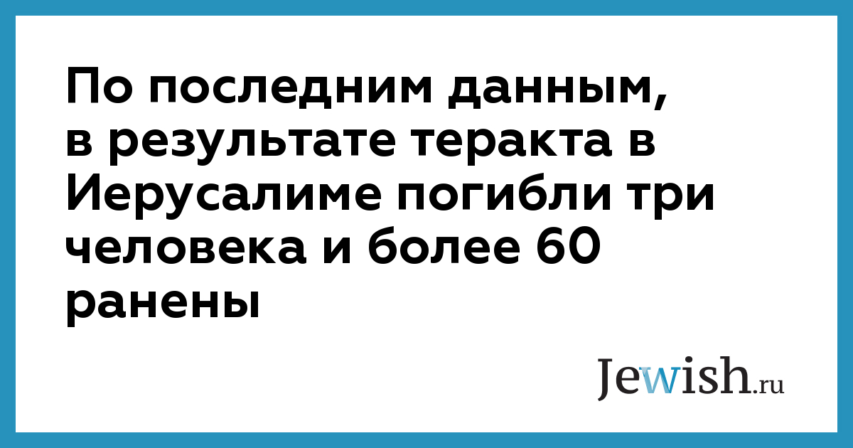 По последним данным, в результате теракта в Иерусалиме погибли три человека и более 60 ранены