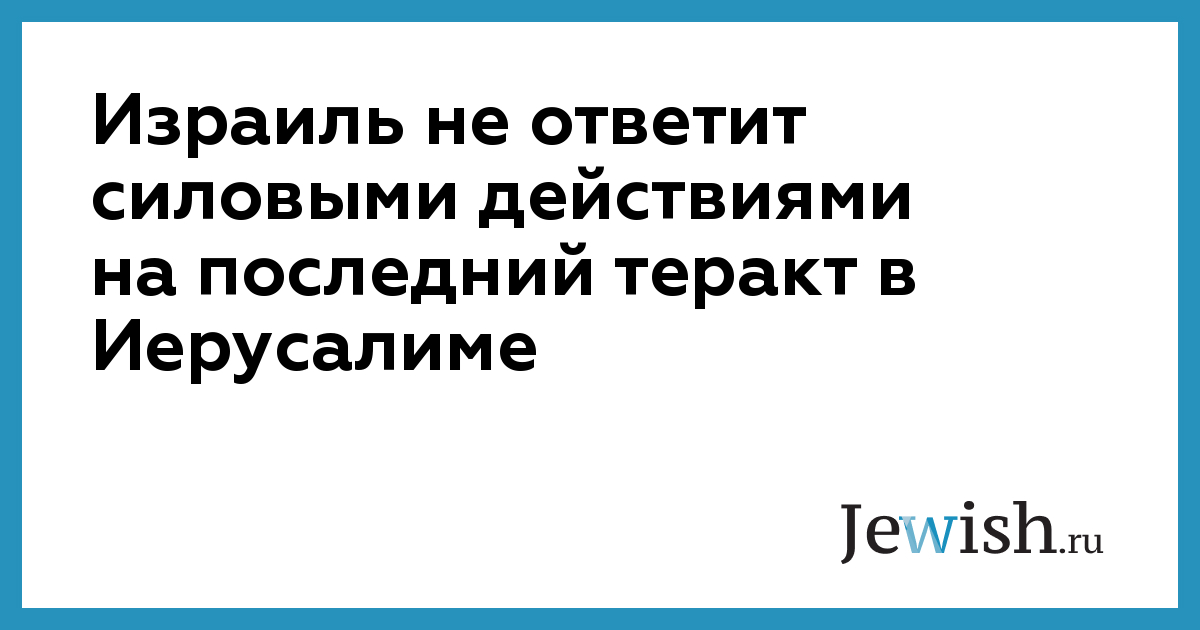 Израиль не ответит силовыми действиями на последний теракт в Иерусалиме
