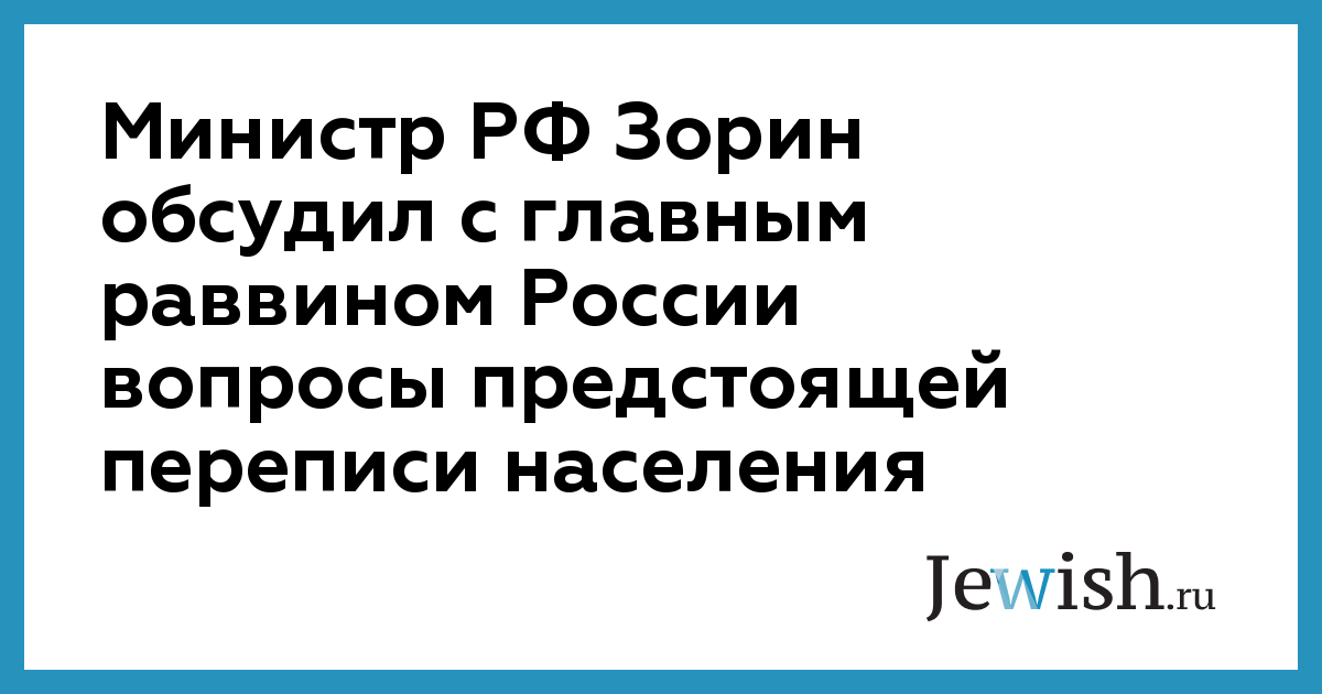 Министр РФ Зорин обсудил с главным раввином России вопросы предстоящей переписи населения