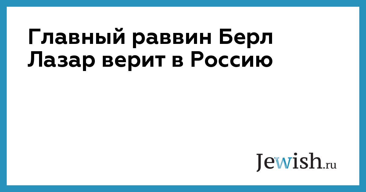 Главный раввин Берл Лазар верит в Россию