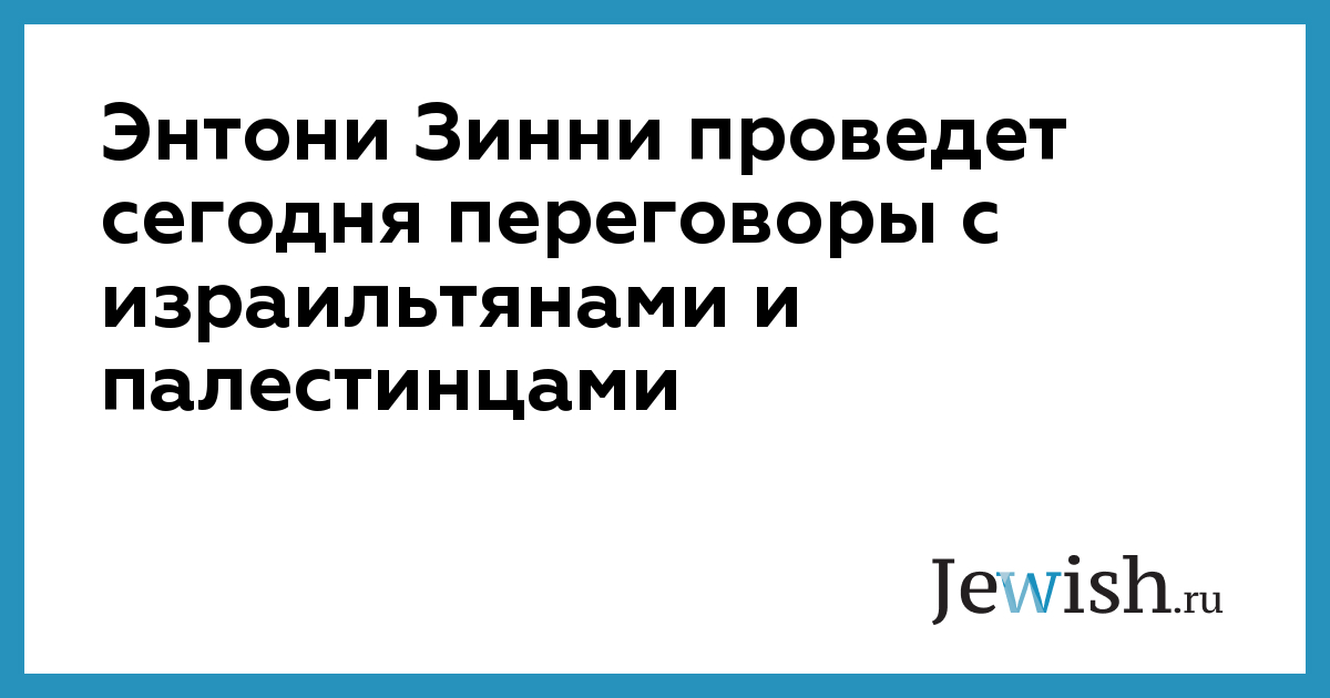 Энтони Зинни проведет сегодня переговоры с израильтянами и палестинцами