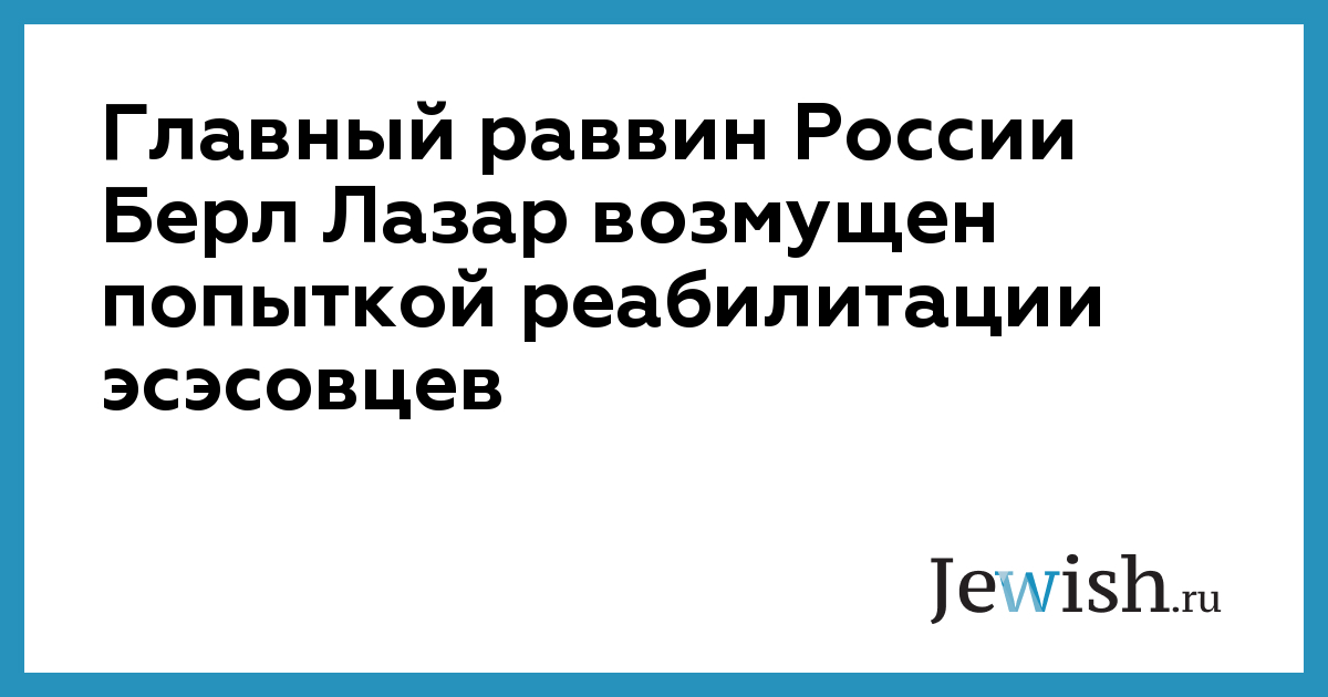 Главный раввин России Берл Лазар возмущен попыткой реабилитации эсэсовцев