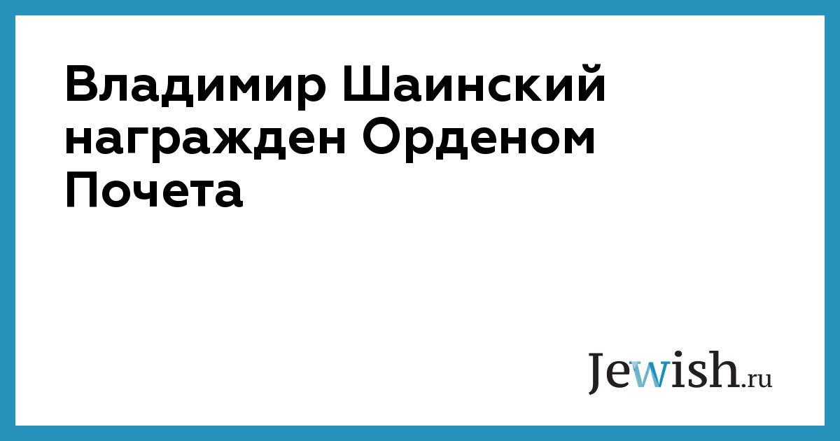 Владимир Шаинский награжден Орденом Почета
