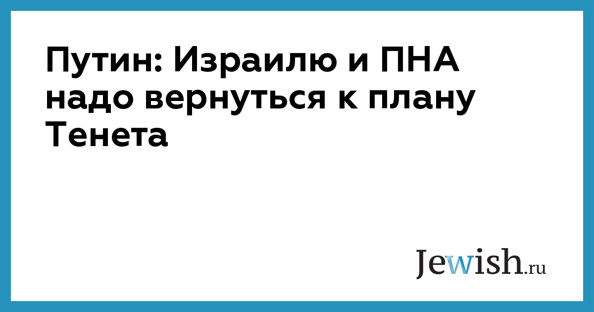 Путин: Израилю и ПНА надо вернуться к плану Тенета