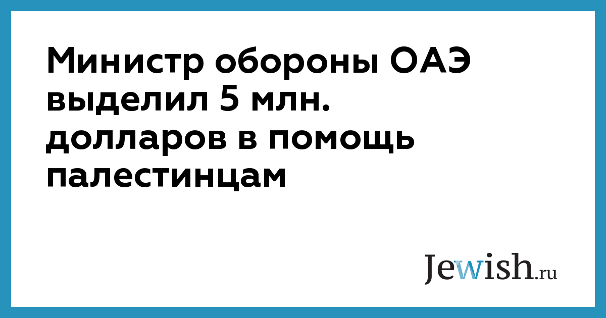 Министр обороны ОАЭ выделил 5 млн. долларов в помощь палестинцам