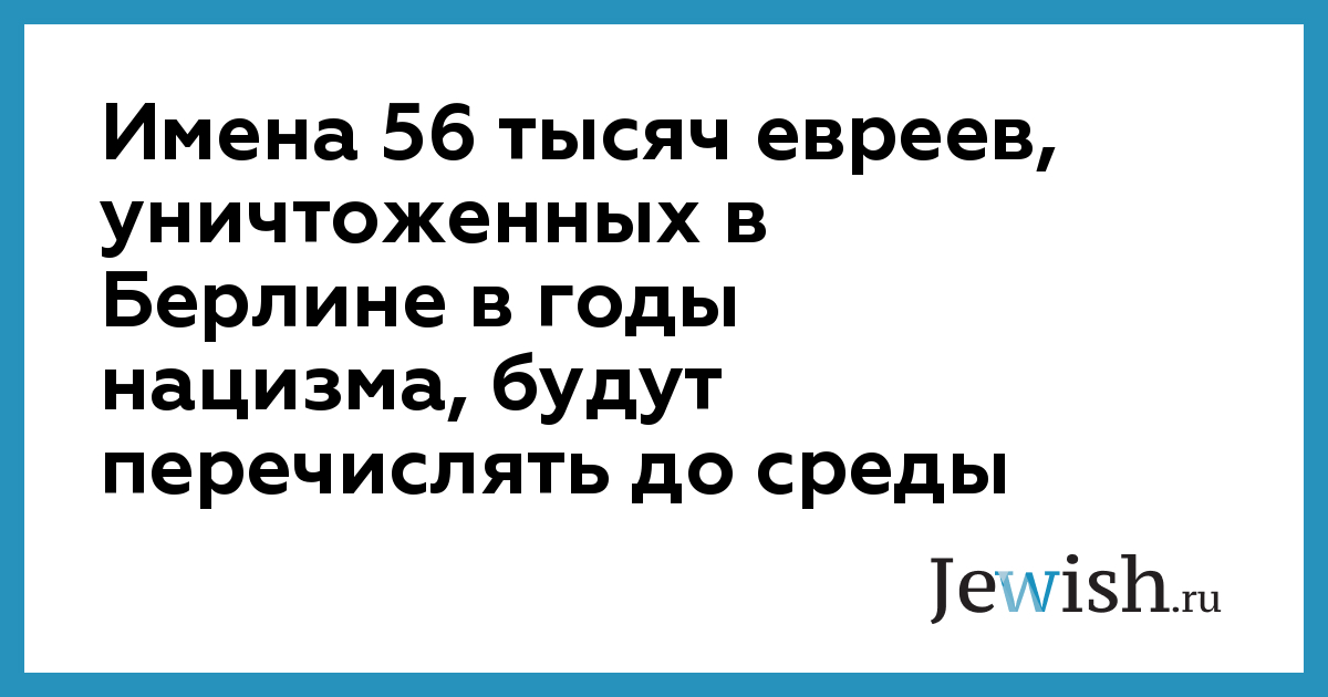 Имена 56 тысяч евреев, уничтоженных в Берлине в годы нацизма, будут перечислять до среды