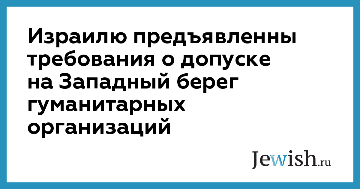 Израилю предъявленны требования о допуске на Западный берег гуманитарных организаций