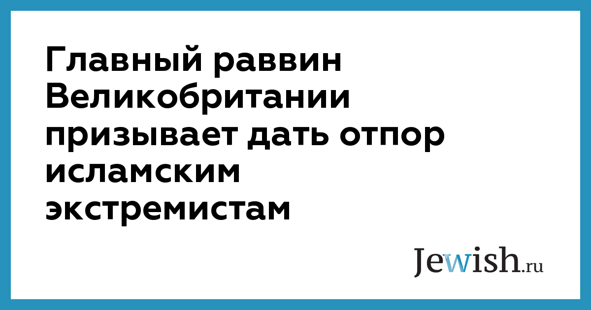 Главный раввин Великобритании призывает дать отпор исламским экстремистам