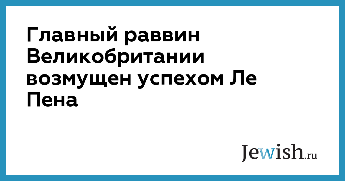Главный раввин Великобритании возмущен успехом Ле Пена