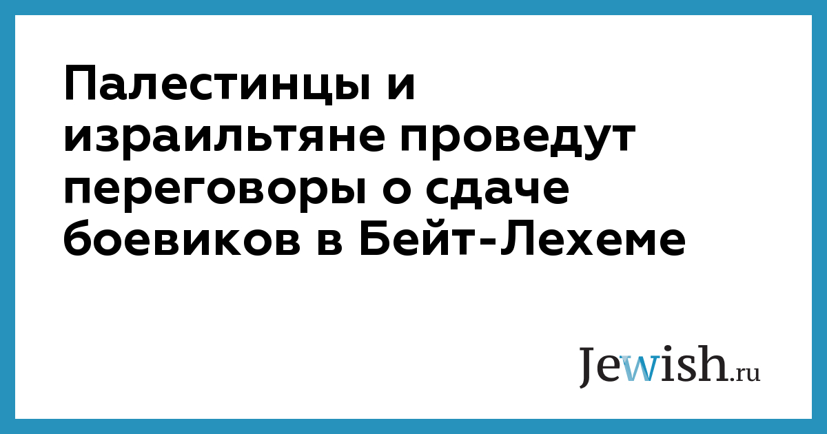 Палестинцы и израильтяне проведут переговоры о сдаче боевиков в Бейт-Лехеме