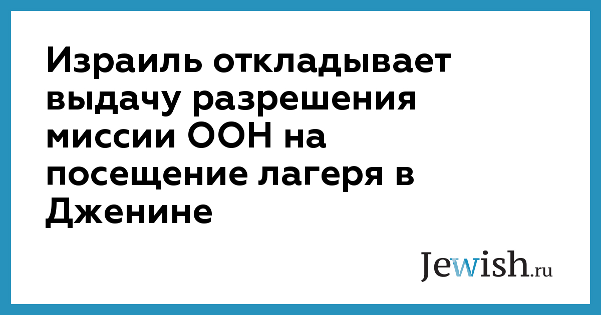 Израиль откладывает выдачу разрешения миссии ООН на посещение лагеря в Дженине
