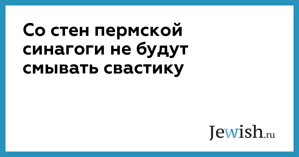 Со стен пермской синагоги не будут смывать свастику