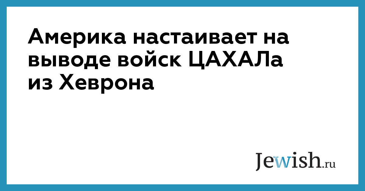 Америка настаивает на выводе войск ЦАХАЛа из Хеврона