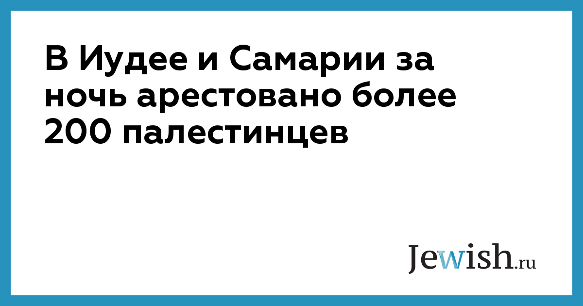 В Иудее и Самарии за ночь арестовано более 200 палестинцев