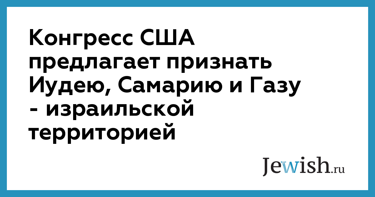 Конгресс США предлагает признать Иудею, Самарию и Газу — израильской территорией