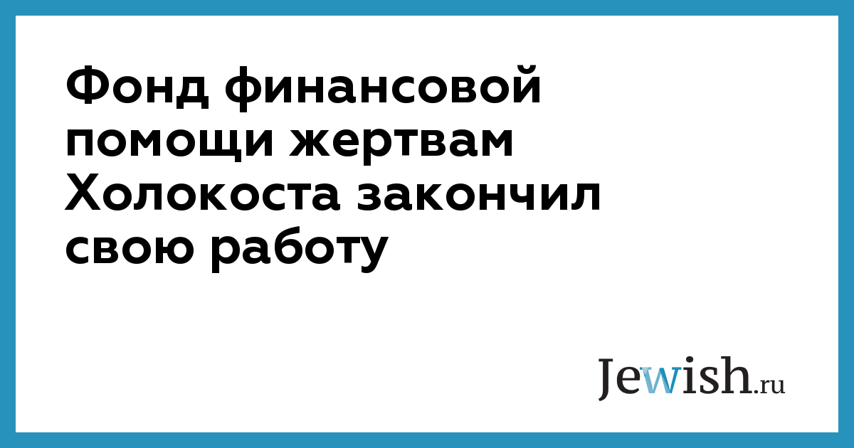 Фонд финансовой помощи жертвам Холокоста закончил свою работу