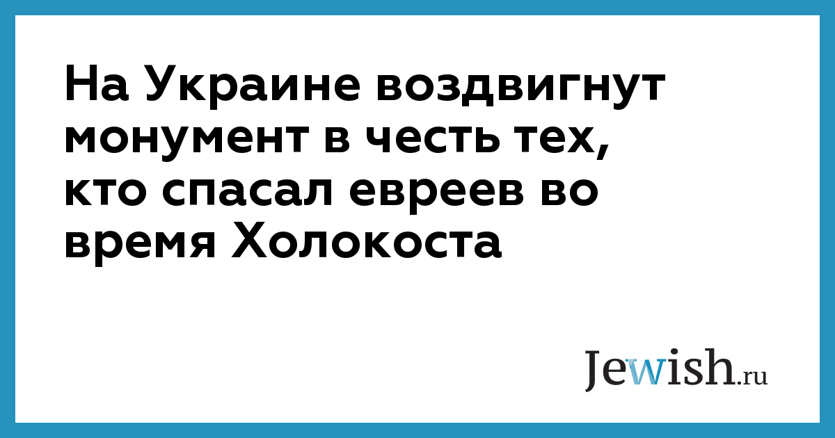 На Украине воздвигнут монумент в честь тех, кто спасал евреев во время Холокоста