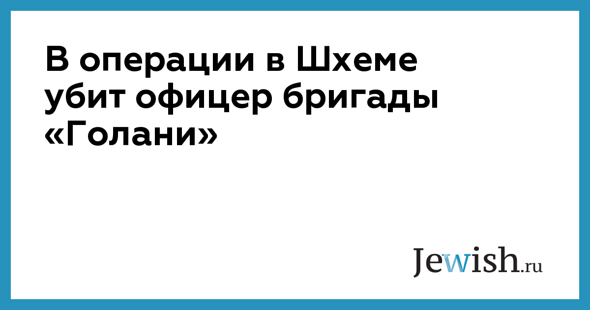 В операции в Шхеме убит офицер бригады «Голани»