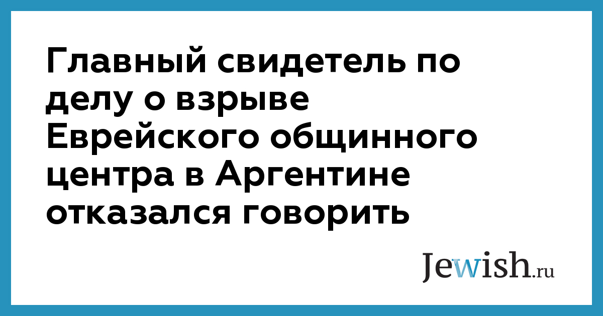 Главный свидетель по делу о взрыве Еврейского общинного центра в Аргентине отказался говорить