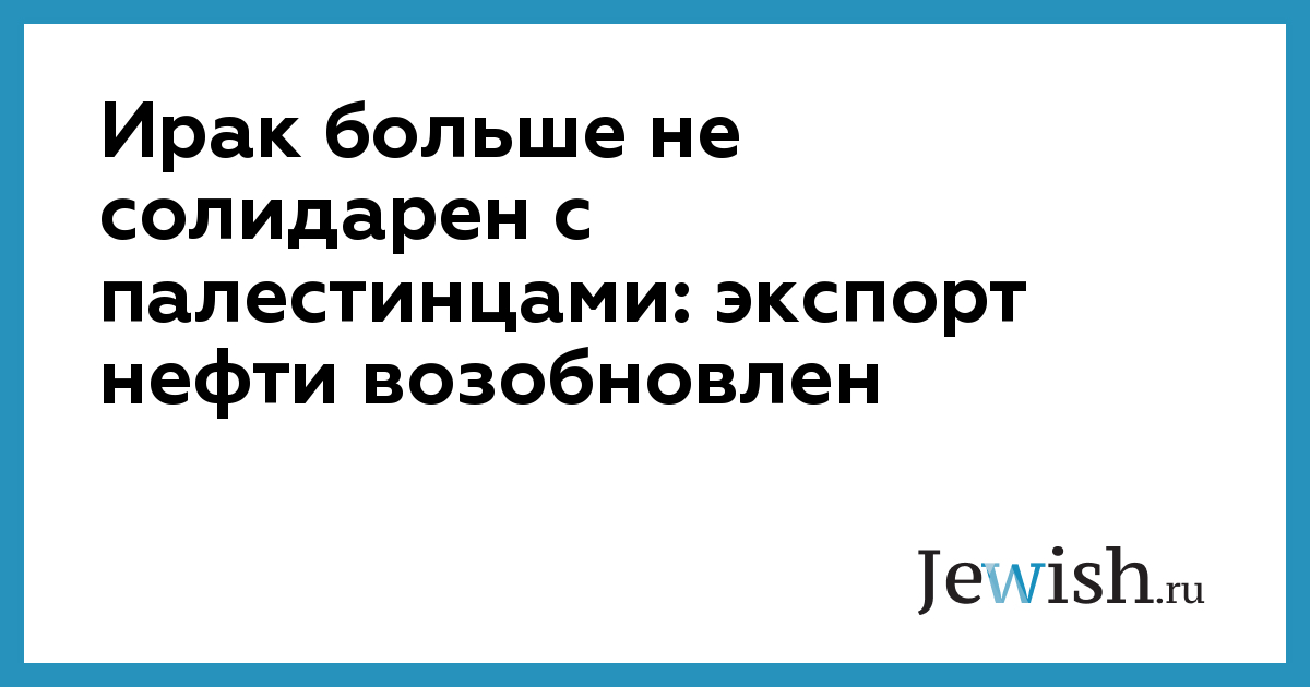 Ирак больше не солидарен с палестинцами: экспорт нефти возобновлен