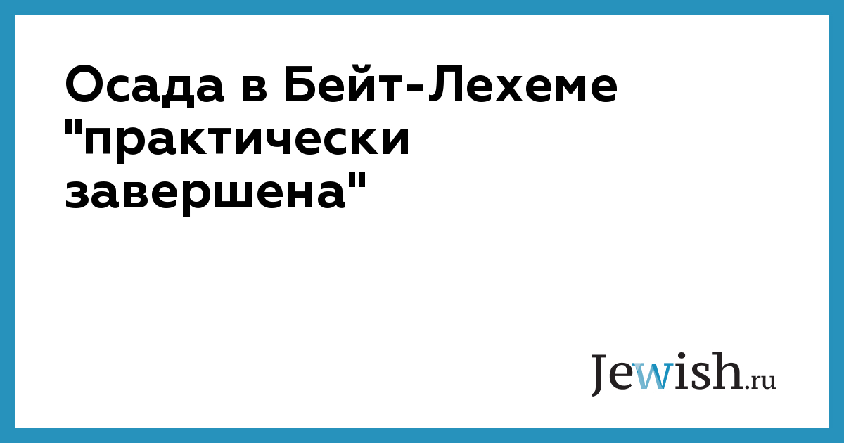 Осада в Бейт-Лехеме "практически завершена"