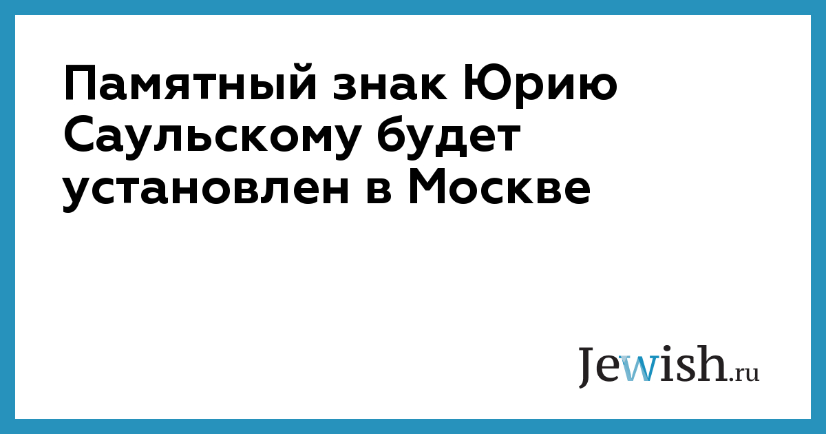 Памятный знак Юрию Саульскому будет установлен в Москве