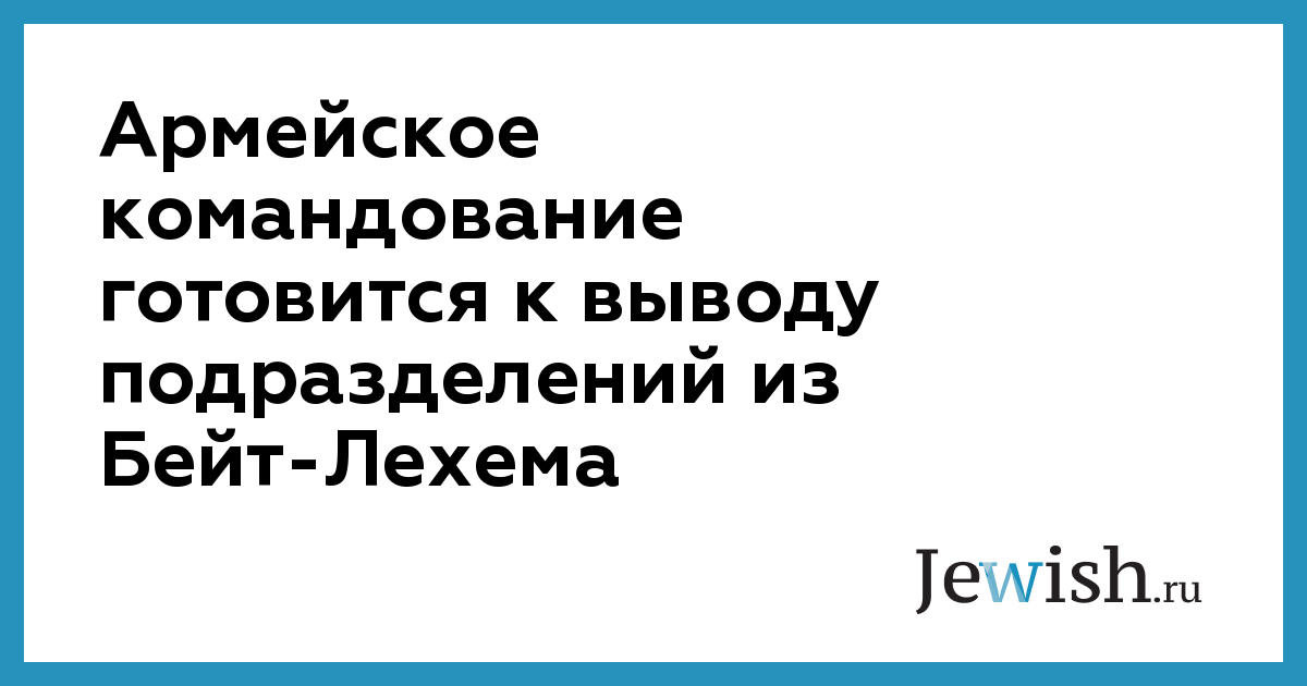 Армейское командование готовится к выводу подразделений из Бейт-Лехема