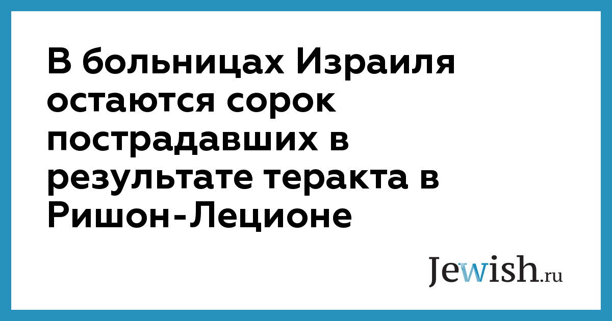 В настоящий момент в больницах центральных районов Израиля остаются сорок пострадавших в результате террористического акта в южном пригороде Тель-Авива Ришон-Лецион. Состояние шестнадцати раненых оценивается медиками как тяжелое. По уточненным данным, в результате взрыва бомбы террористом-смертником в бильярдном клубе в Ришон-Леционе погибли пятнадцать человек. Здание почти полностью разрушено. Израильское радио, со ссылкой на данные спецслужб и полиции, утром в среду сообщило о намерениях различного рода экстремистских организаций совершить новые террористические акты на территории Израиля. В данной связи приводится заявление премьер-министра Израиля Ариэля Шарона на пресс-конференции в Вашингтоне, в котором он подчеркнул, что "Израиль — это суверенное государство, имеющее право на самооборону". Сразу после пресс-конференции, прошедшей в гостинице "Мэдисон" в Вашингтоне, Ариэль Шарон направился в аэропорт для срочного вылета в Израиль. В связи с терактом в Ришон-Леционе глава израильского правительства заметно сократил сроки своего пребывания в США. Вместо него в четверг в Нью-Йорке с речью перед руководителями американских еврейских организаций выступит министр просвещения Лимор Ливнат. Выступая на пресс-конференции, Ариэль Шарон возложил личную ответственность за террористический акт в Ришон-Леционе на руководителя Палестинской национальной администрации Ясира Арафата.