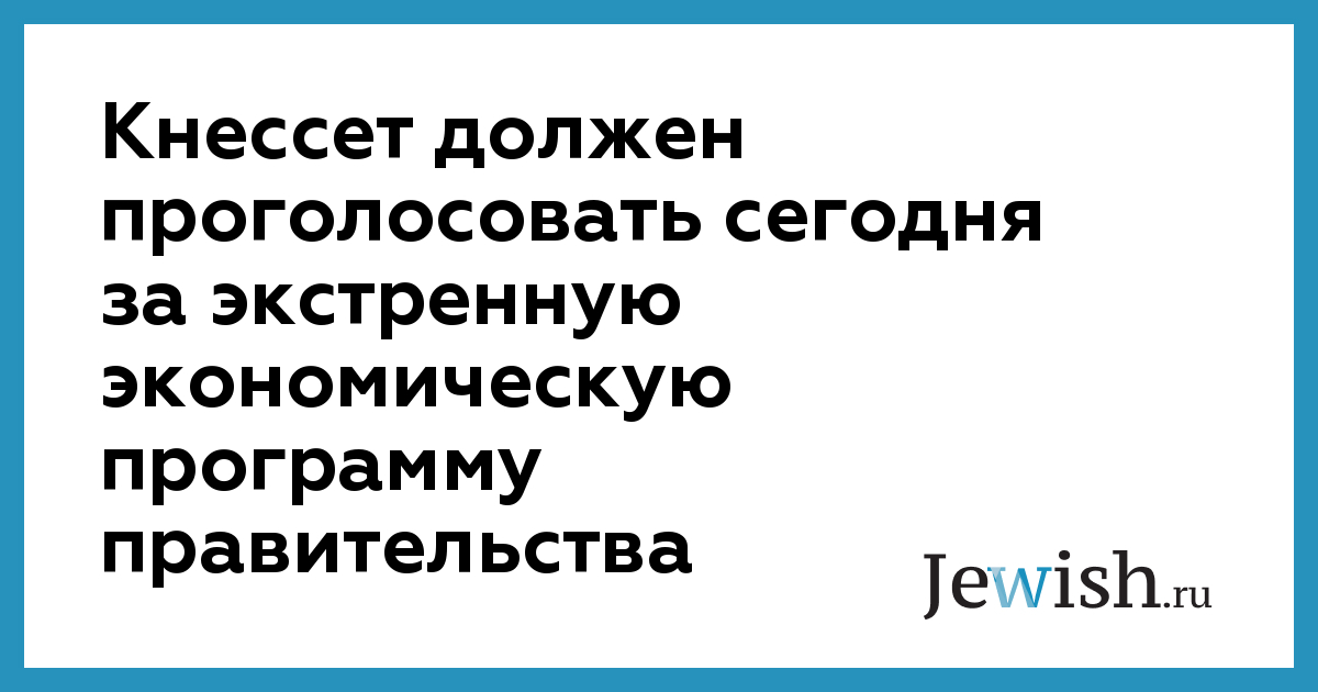 Кнессет должен проголосовать сегодня за экстренную экономическую программу правительства