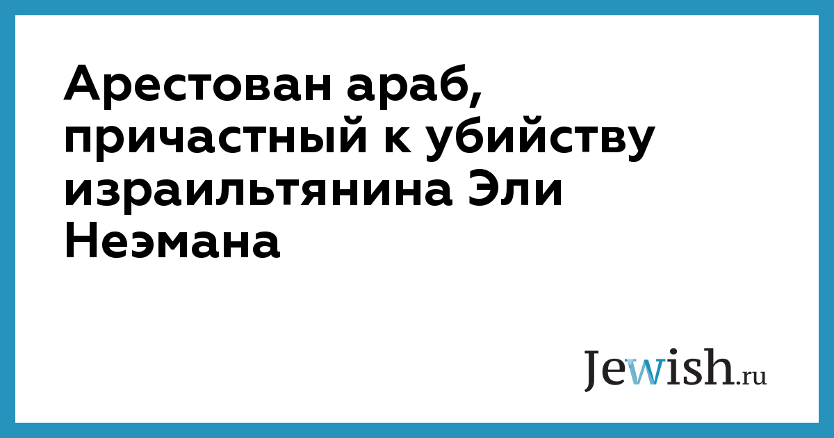 Арестован араб, причастный к убийству израильтянина Эли Неэмана