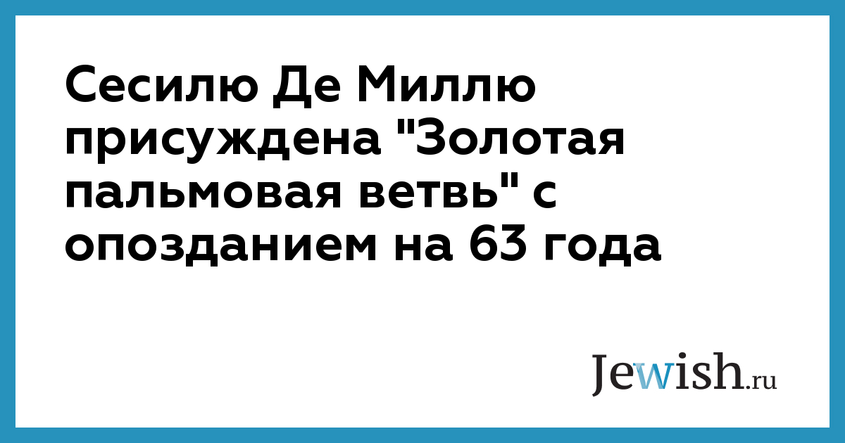 Сесилю Де Миллю присуждена "Золотая пальмовая ветвь" с опозданием на 63 года