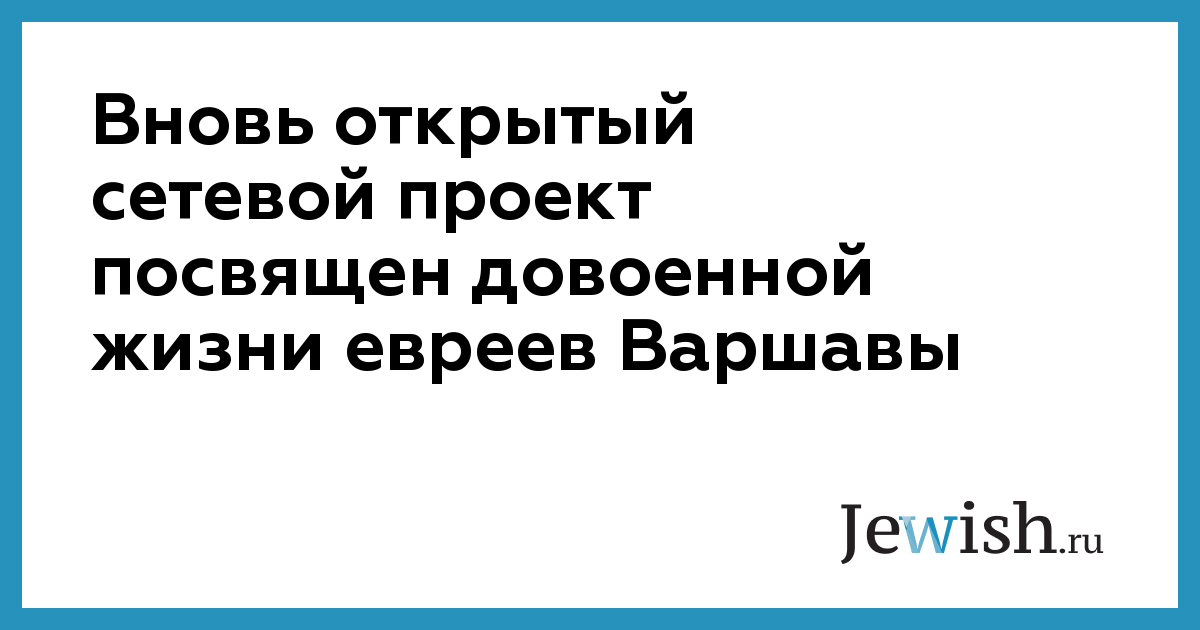 Вновь открытый сетевой проект посвящен довоенной жизни евреев Варшавы