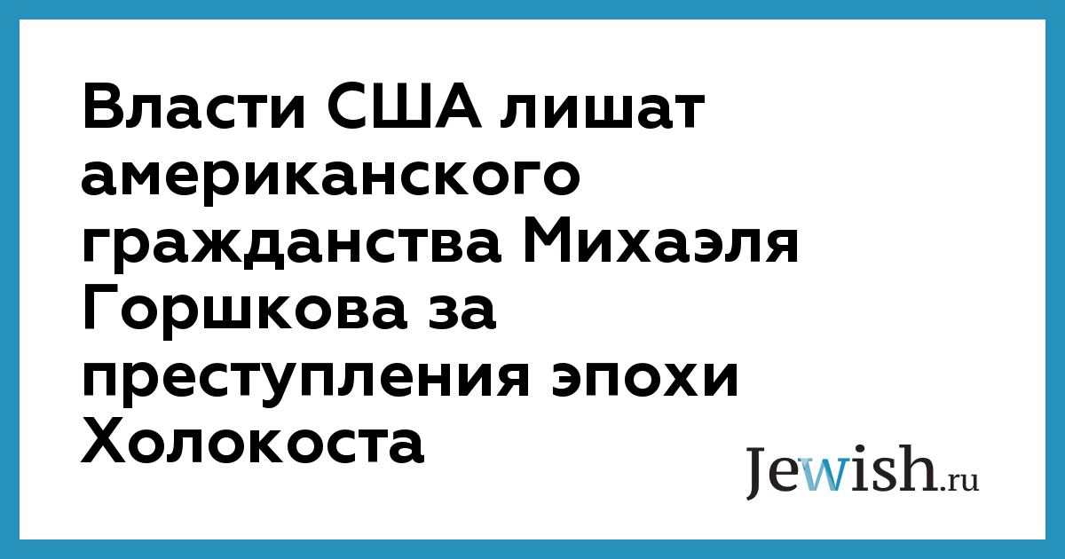 Власти США сообщили в среду, что намерены лишить американского гражданства живущего во Флориде уроженца Эстонии, которого подозревают в преследовании евреев в одном из нацистских концлагерей на территории Белорусии. Министерство юстиции США подало иск в окружной суд Пенсаколы, обвиняя живущего в городе Панама штата Флорида 79-летнего Михаэля Горшкова в причастности к преступлениям нацистов в 1942-43 годах на территории Белоруссии. Отмечается, что Горшков родился до войны в Эстонии, а в годы Второй мировой войны служил офицером в гестапо. В 1943 году Горшков служил переводчиком в штабе гестапо в Минске, и в феврале того же года принял участие в массовых казнях жителей еврейского гетто в Слуцке. Нацисты расстреляли, а также сожгли заживо около 3 тысяч обитателей гетто, перекрыв все выходы из него. "Гестапо было одним из самых жестоких инструментов убийства, и человек, принимавший участие в акциях гестаповцев, не достоин быть гражданином США", — подчеркнул помощник генерального прокурора Майкл Шертофф. Как выяснило следствие, Горшков помогал также допрашивать политических заключенных в Минске, участвовал в карательных операциях против советских партизан, сопровождавшихся пытками, массовыми расстрелами и ссылками. В обвинении отмечается, что Горшков родился в Эстонии, после Второй мировой войны остался в Германии, откуда в 1951 году эмигрировал в США. Гражданство США он получил в порядке натурализации в 1963 году в штате Миннесота.