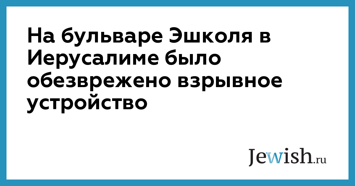 На бульваре Эшколя в Иерусалиме было обезврежено взрывное устройство