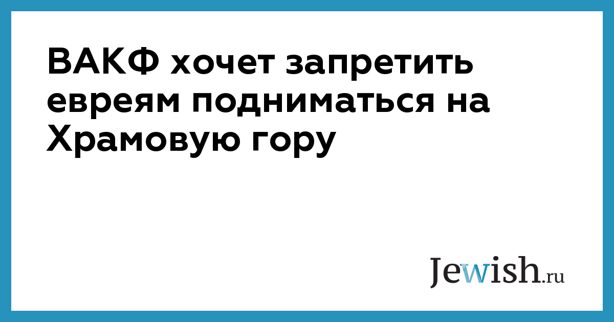 Ни одному еврею не будет позволено отныне подниматься на Храмовую гору — с таким заявлением выступил религиозный совет мусульманских организаций Иерусалима, ВАКФ. Это было сделано в ответ на сообщения о том, что полиция готовится к открытию этого места паломничества для туристов и граждан Израиля. Представитель ВАКФ Аднан эль-Хусейни подчеркнул, что представители любой другой религии, кроме мусульманской, не будут допущены на гору, добавив, что лишь власти Палестинской автономии в праве давать разрешения на посещение этого святого места. Напомним, что Храмовая гора, которая является святыней и памятником истории, как для евреев, так и мусульман, была закрыта для посетителей 19 месяцев тому назад в результате начала новой палестинской "интифады". Представители Службы общей безопасности Израиля (ШАБАК) порекомендовали вновь открыть ее для свободного посещения. В древности на Храмовой горе — святом месте для всех иудеев мира — располагались Первый и Второй храмы, разрушенные вначале войсками Навуходоносора, а затем римскими легионерами. Здесь же, согласно Традиции, должен быть возведен и Третий храм. Храмовая гора и уцелевшая часть Второго храма — Стена плача — были освобождены израильскими войсками во время Шестидневной войны 1967 года. Правительство страны обратилось к руководству ВАКФ с требованием открыть гору для ежедневных посещений. Первая реакция мусульманского руководства Иерусалима носит более чем агрессивный характер.