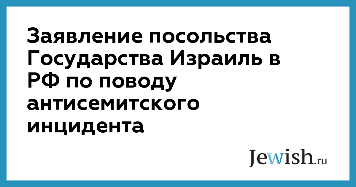Заявление посольства Государства Израиль в РФ по поводу антисемитского инцидента