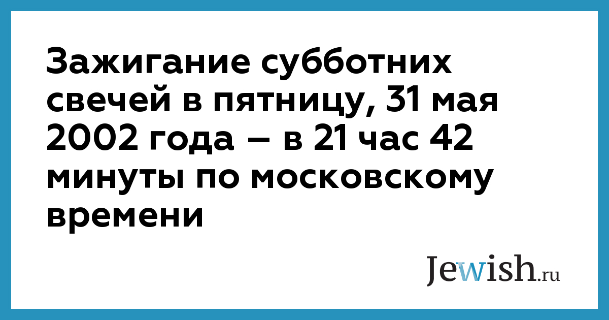 Зажигание субботних свечей в пятницу, 31 мая 2002 года – в 21 час 42 минуты по московскому времени
