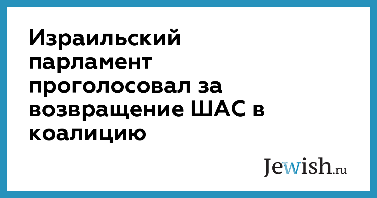 Израильский парламент проголосовал за возвращение ШАС в коалицию