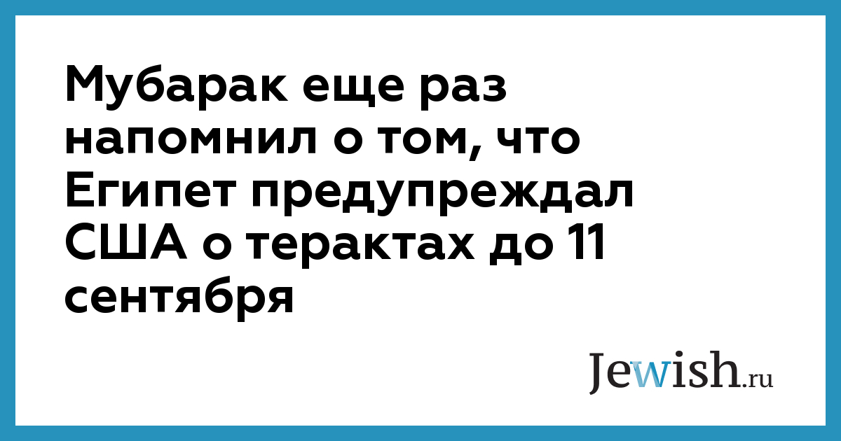 Мубарак еще раз напомнил о том, что Египет предупреждал США о терактах до 11 сентября
